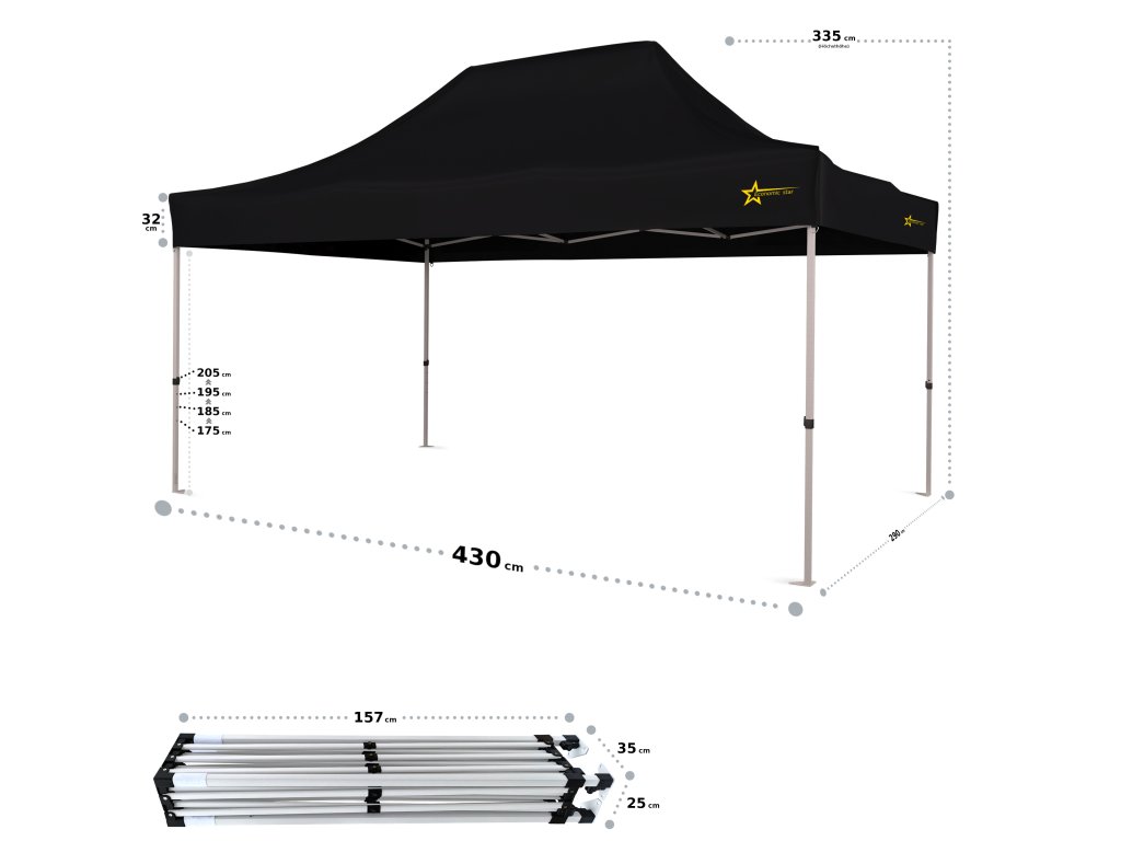 Angesichts der Präsenz ähnlicher, oft minderwertiger Einweg-Scherenzelte auf dem Markt hat der renommierte Hersteller beschlossen, auch in dieser Preiskategorie das Beste anzubieten. Unser neues Modell Economic STAR bietet ein zuverlässiges und hochwertiges Zelt, das Ihre Erwartungen erfüllen wird, und das zu einem erschwinglichen Preis. Genießen Sie eine zuverlässige Überdachung, die Sie nicht im Stich lassen wird und Komfort bei Outdoor-Aktivitäten bietet.